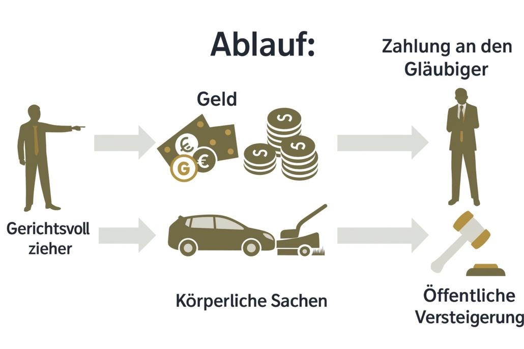 Im Anschluss stellt der Gläubiger einen Antrag an den Gerichtsvollzieher. Dieser ist ausschließlich für die Durchführung der Sachpfändung zuständig – nicht von Mitarbeitern des Gläubigers durchführbar