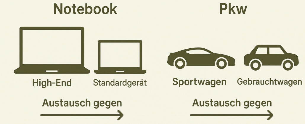 - Austausch eines Sportwagen durch eine einfachen Gebrauchtwagen.